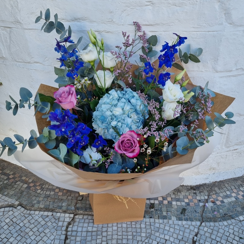 Wild and wonderful, in pinks, whites and blues wrapped in kraft paper.
